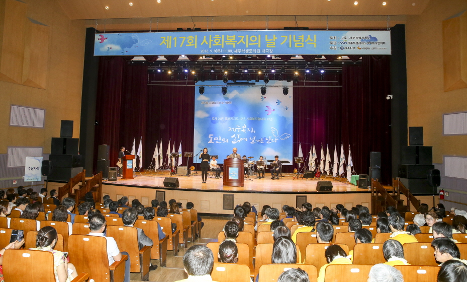 제17회 사회복지의 날 기념식이 ‘제주복지, 도민의 삶에 날개를 달다’를 주제로 지난 8일 11시 제주학생문화원 대극장에서 열렸습니다.