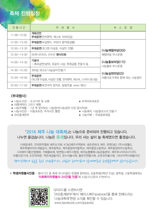 '2016제주 나눔 대축제'진행일정 및 부스배치도 등