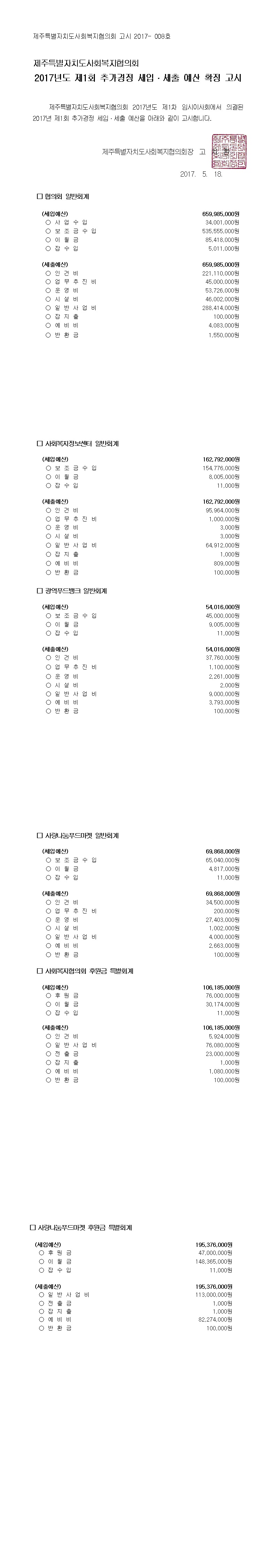 2017년도 제1회 추가경정 세입세출 예산고시