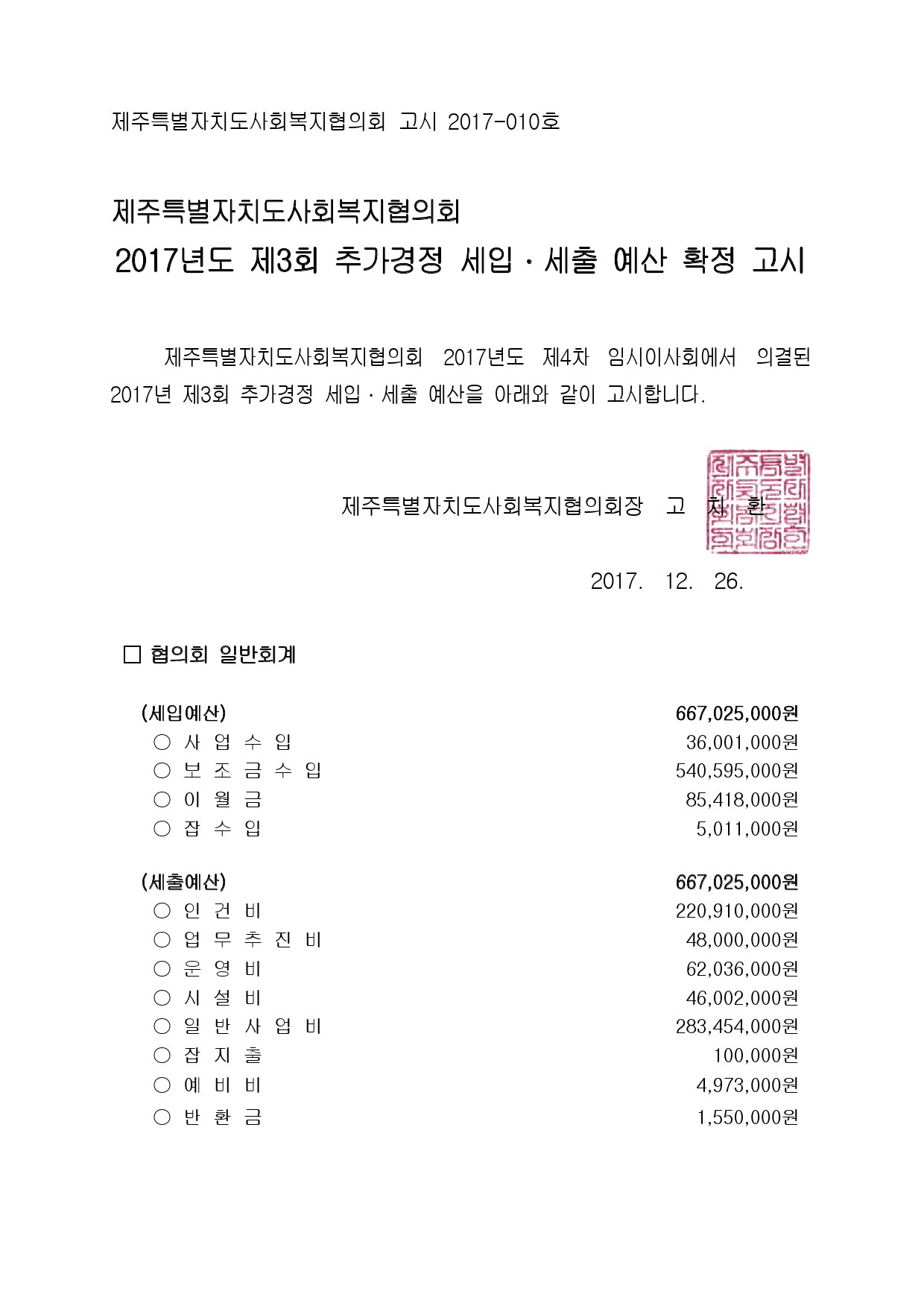 2017년도 제3회 추가경정 세입세출 예산고시