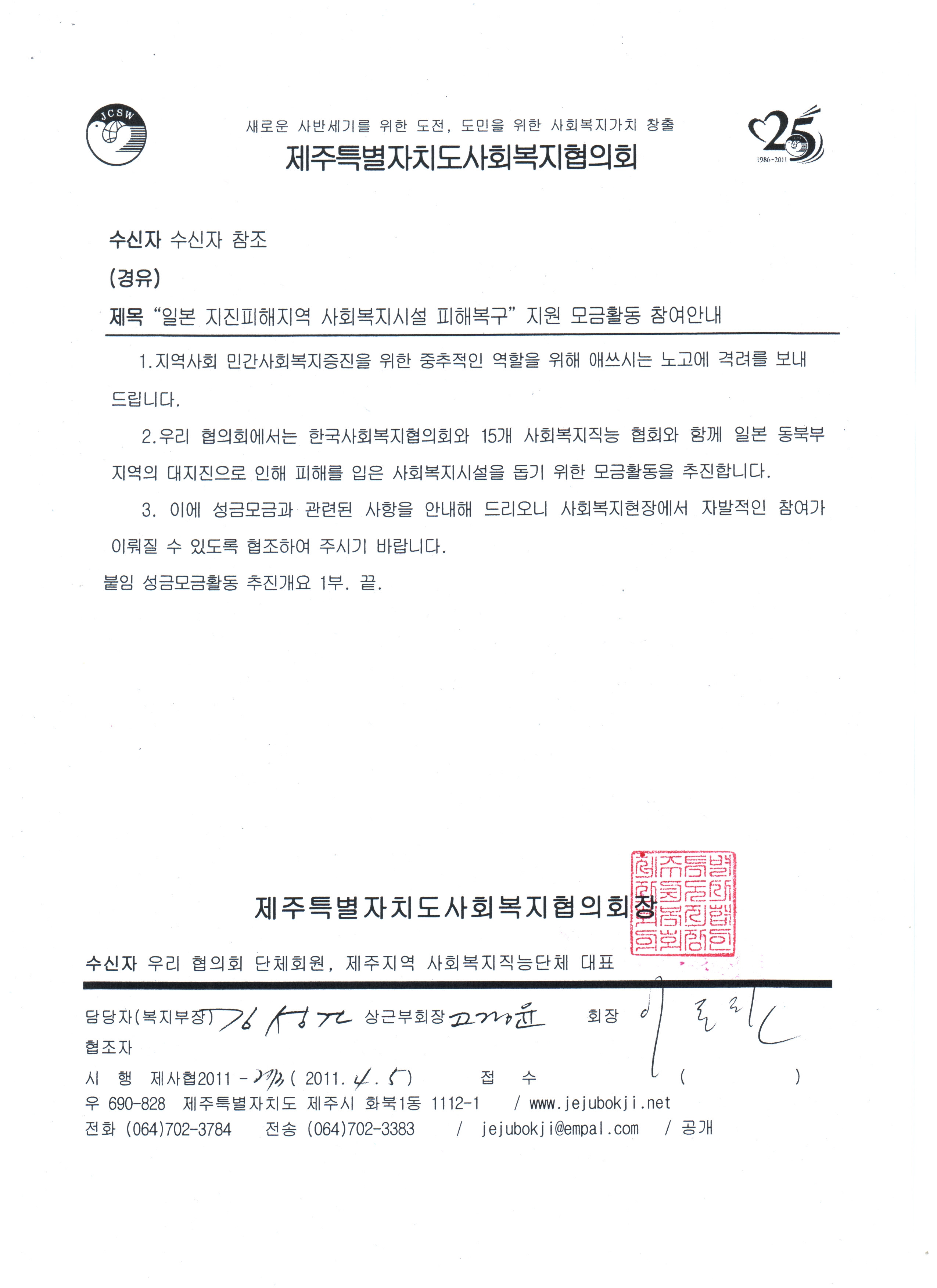 "일본 지진피해지역 사회복지시설 피해복구지원"모금활동 참여안내