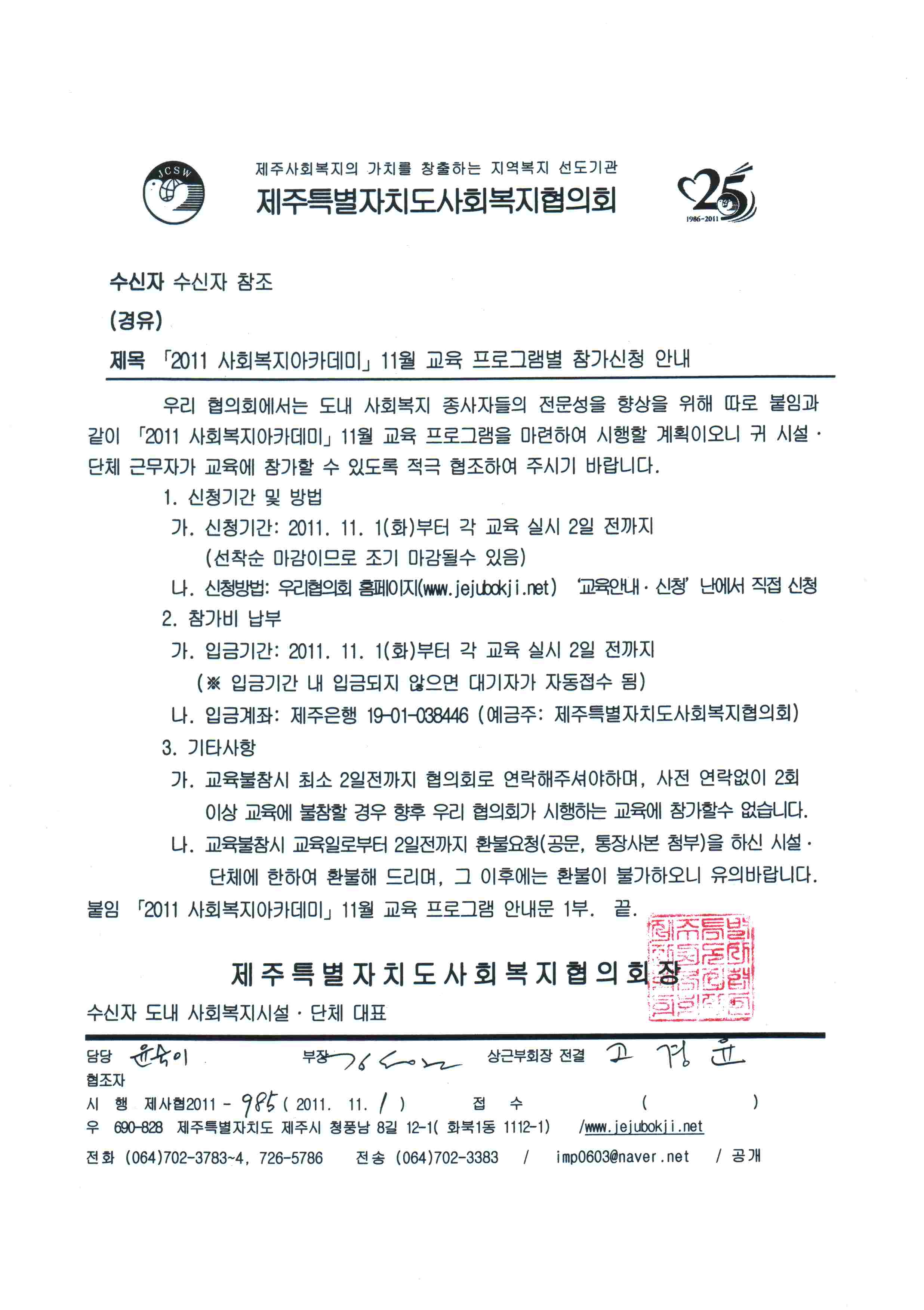 『2011 사회복지 아카데미』 11월 교육 참가안내