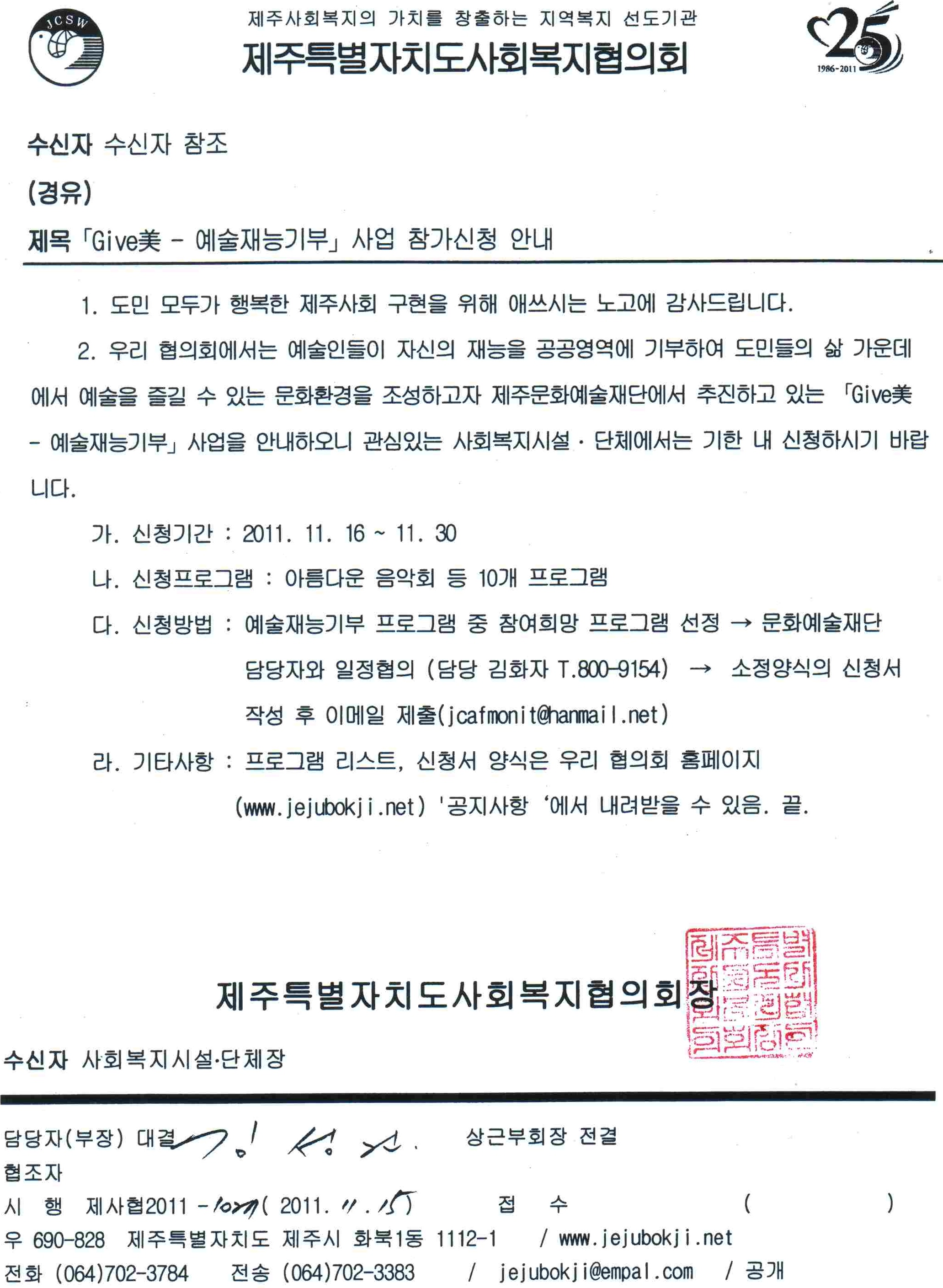 「Give美 - 예술재능기부」사업 참가신청 안내