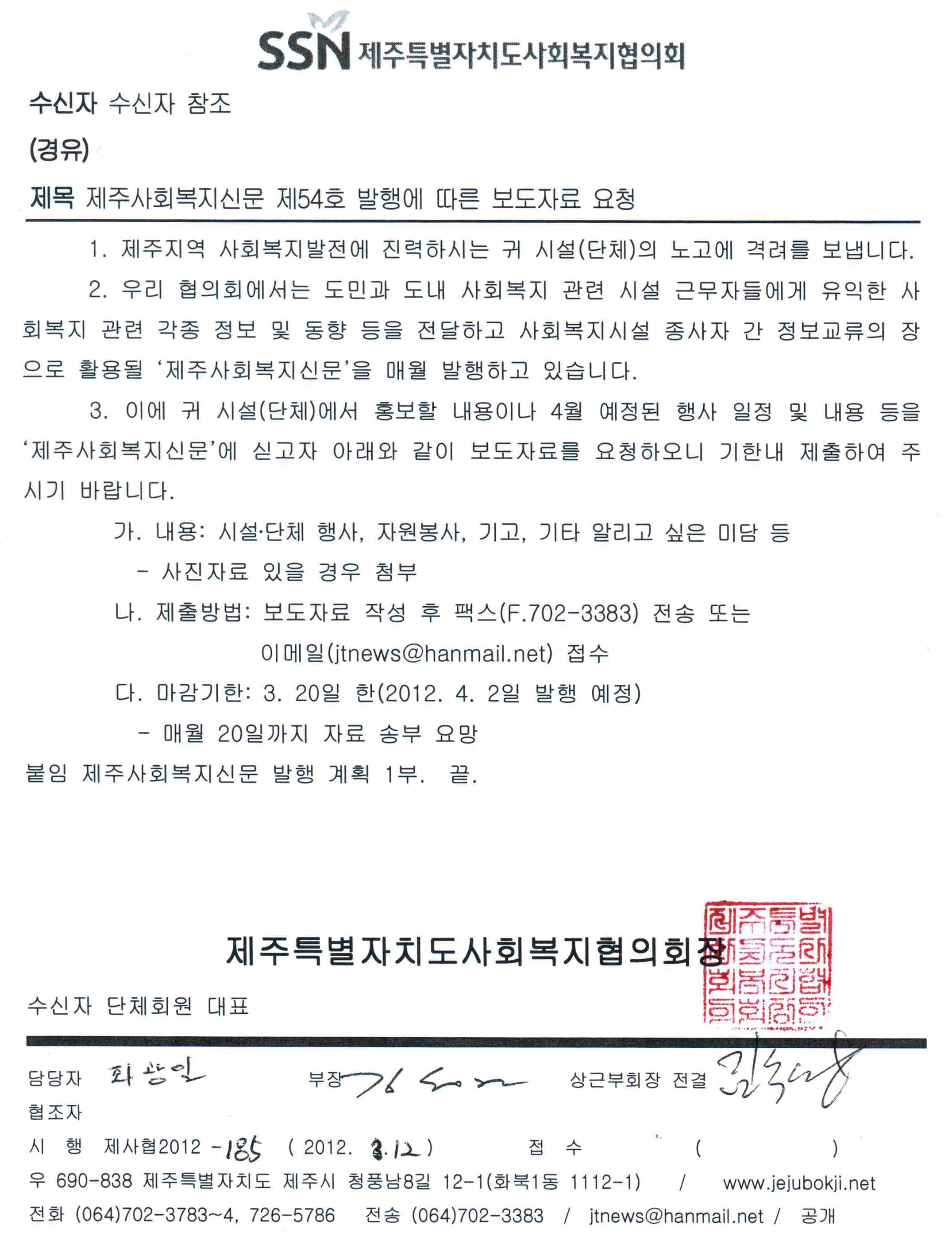 사회복지신문 54호 보도자료 요청