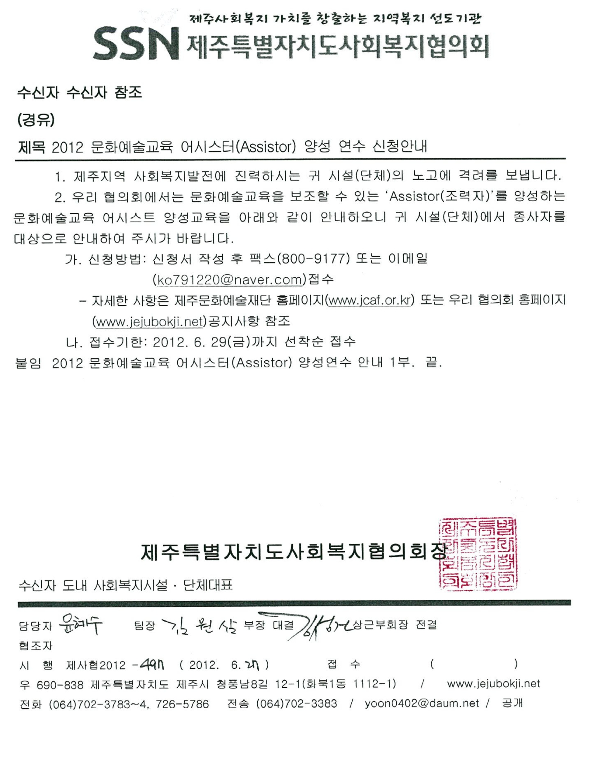 2012 문화예술교육 어시스터 양성연수교육 신청안내