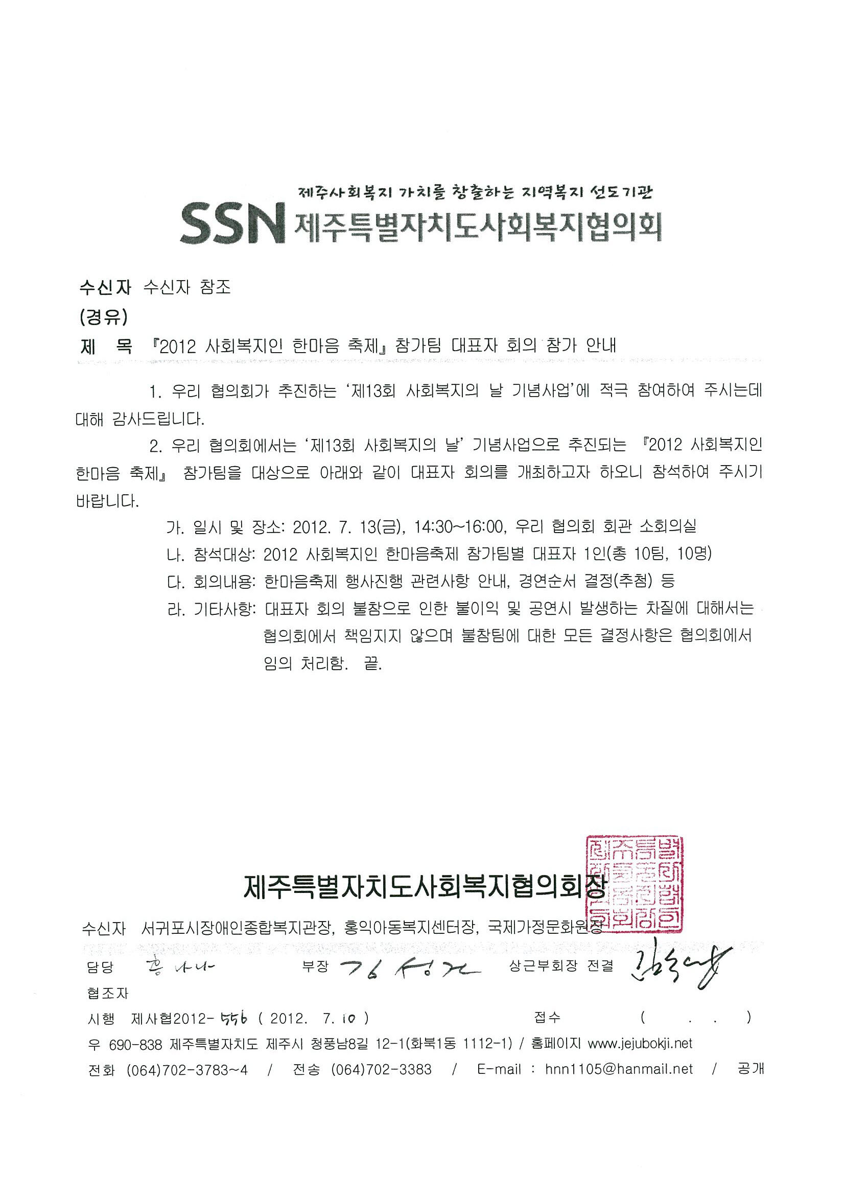 2012 한마음축제 참가팀 대표자회의 참가 안내