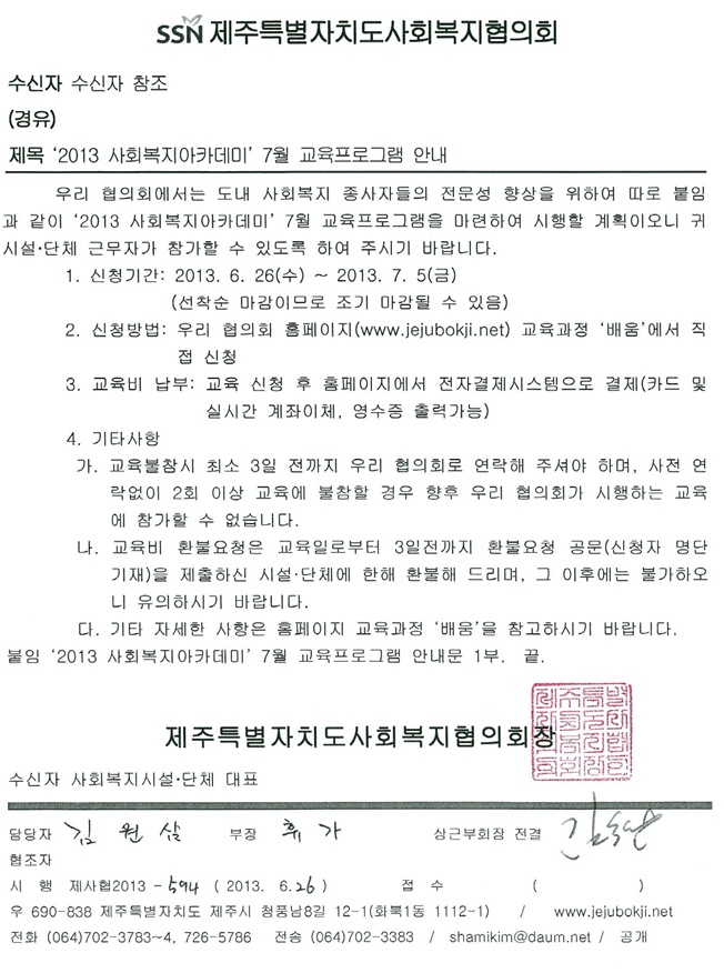 2013년 7월 사회복지아카데미 교육안내