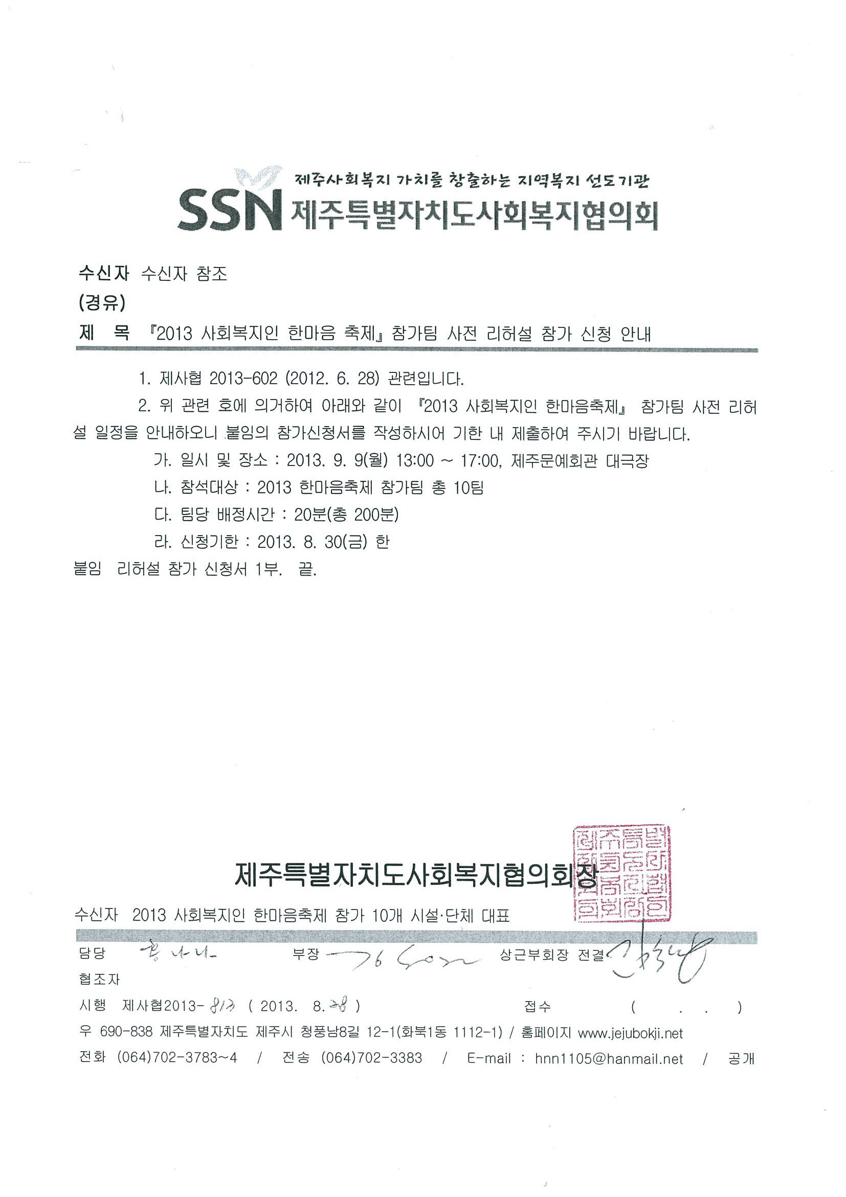 2013 사회복지인 한마음축제 참가팀 리허설 참가신청 안내