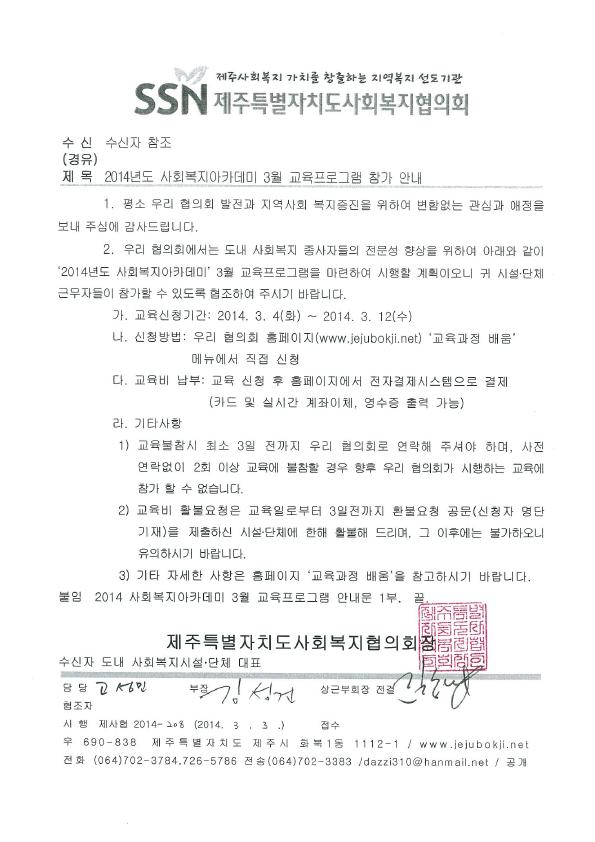 2014년도 사회복지아카데미 3월 교육프로그램 참가 안내