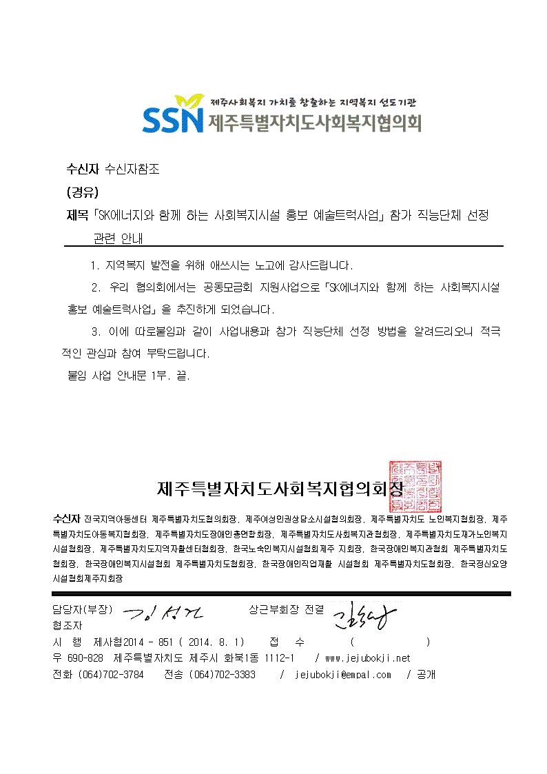 「SK에너지와 함께 하는 사회복지시설 홍보 예술트럭사업」참가 직능단체 선정안내