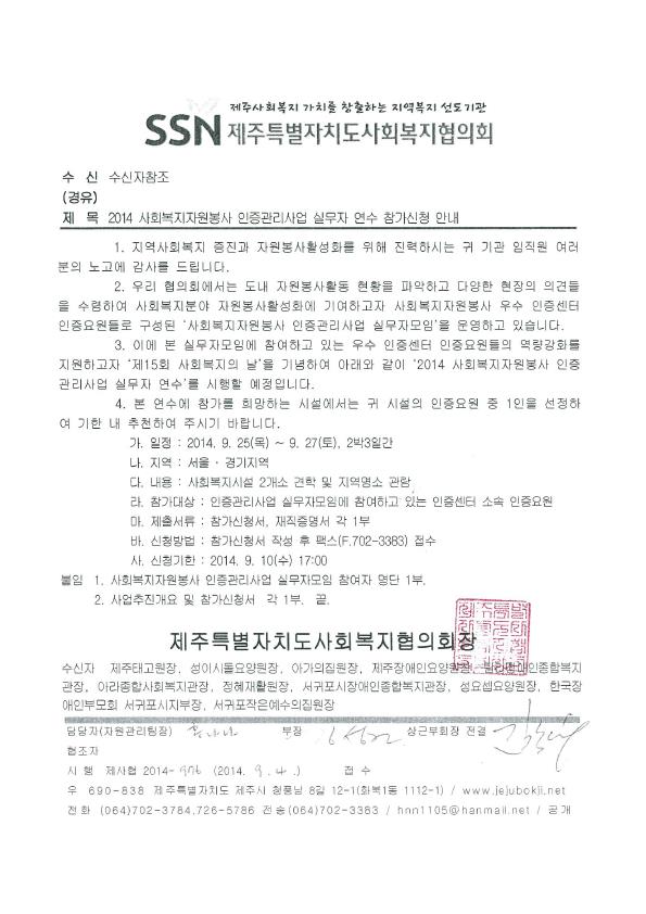 2014 사회복지자원봉사 인증관리사업 실무자 연수 참가신청 안내