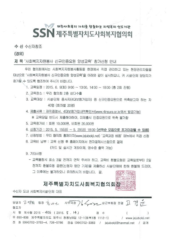 2015년도 2분기 사회복지자원봉사 신규인증요원 양성교육 안내