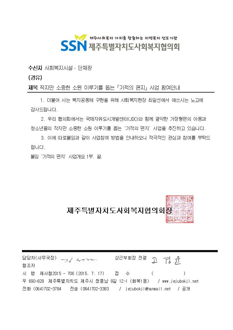'기적의 편지'사업참여안내