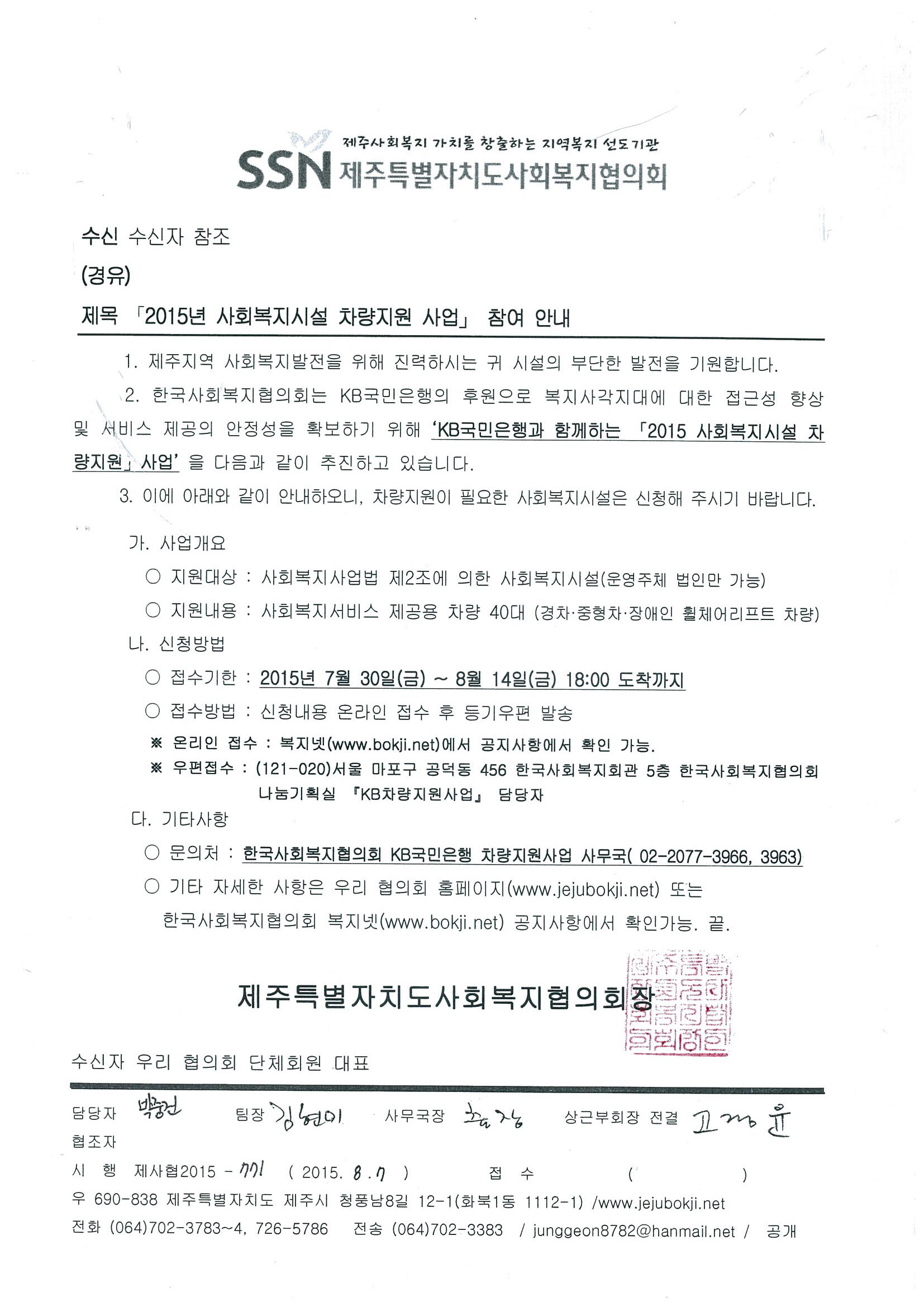 2015년 사회복지시설 차량지원사업 참여안내