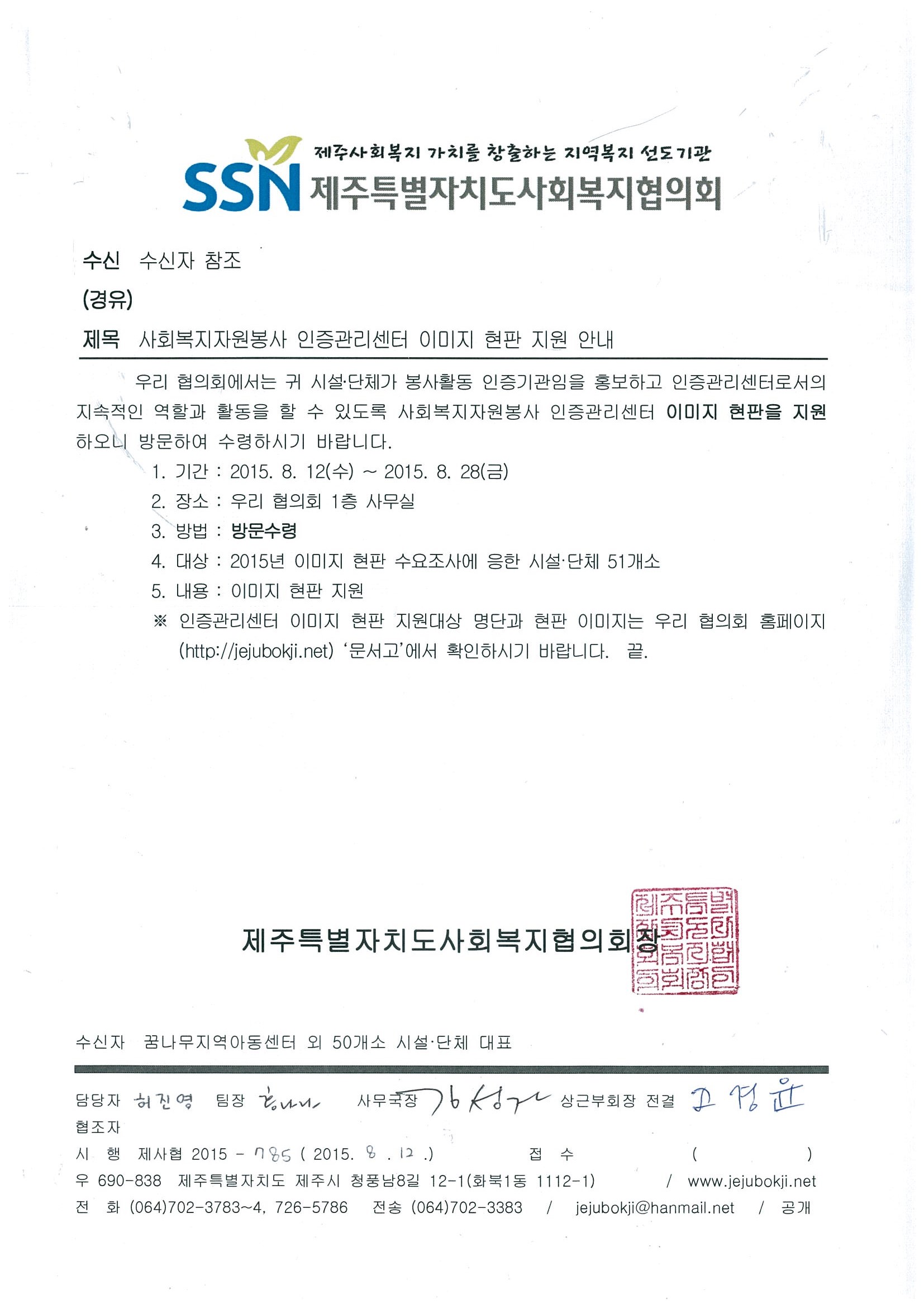 사회복지자원봉사 인증관리센터 이미지 현판 지원 안내