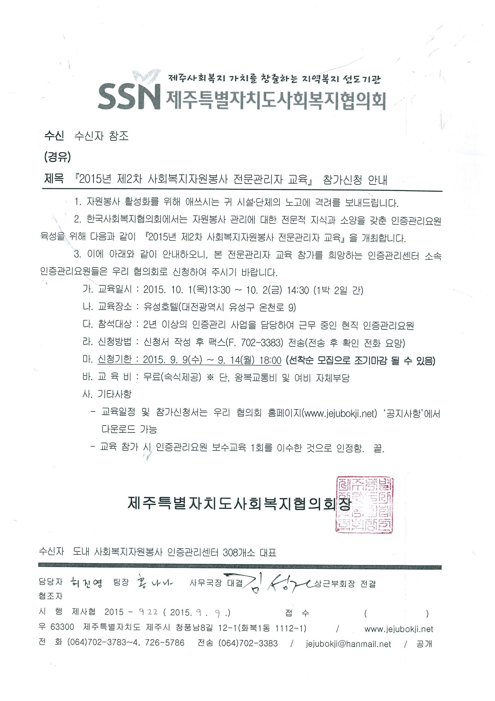 2015년 제2차 사회복지자원봉사 전문관리자 교육 참가신청 안내