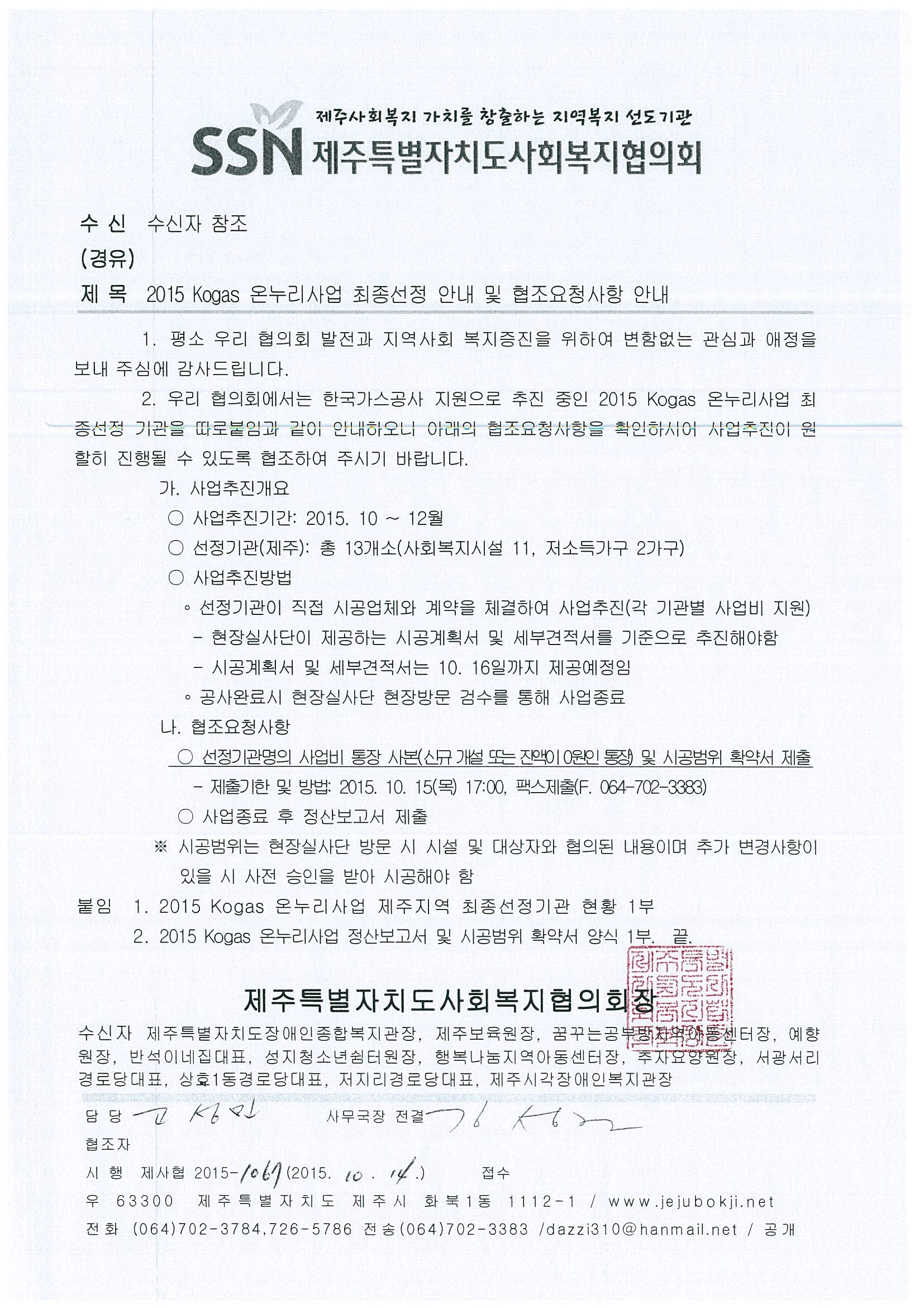 2015 kogas 온누리사업 최종선정 안내 및 협조요청사항 안내