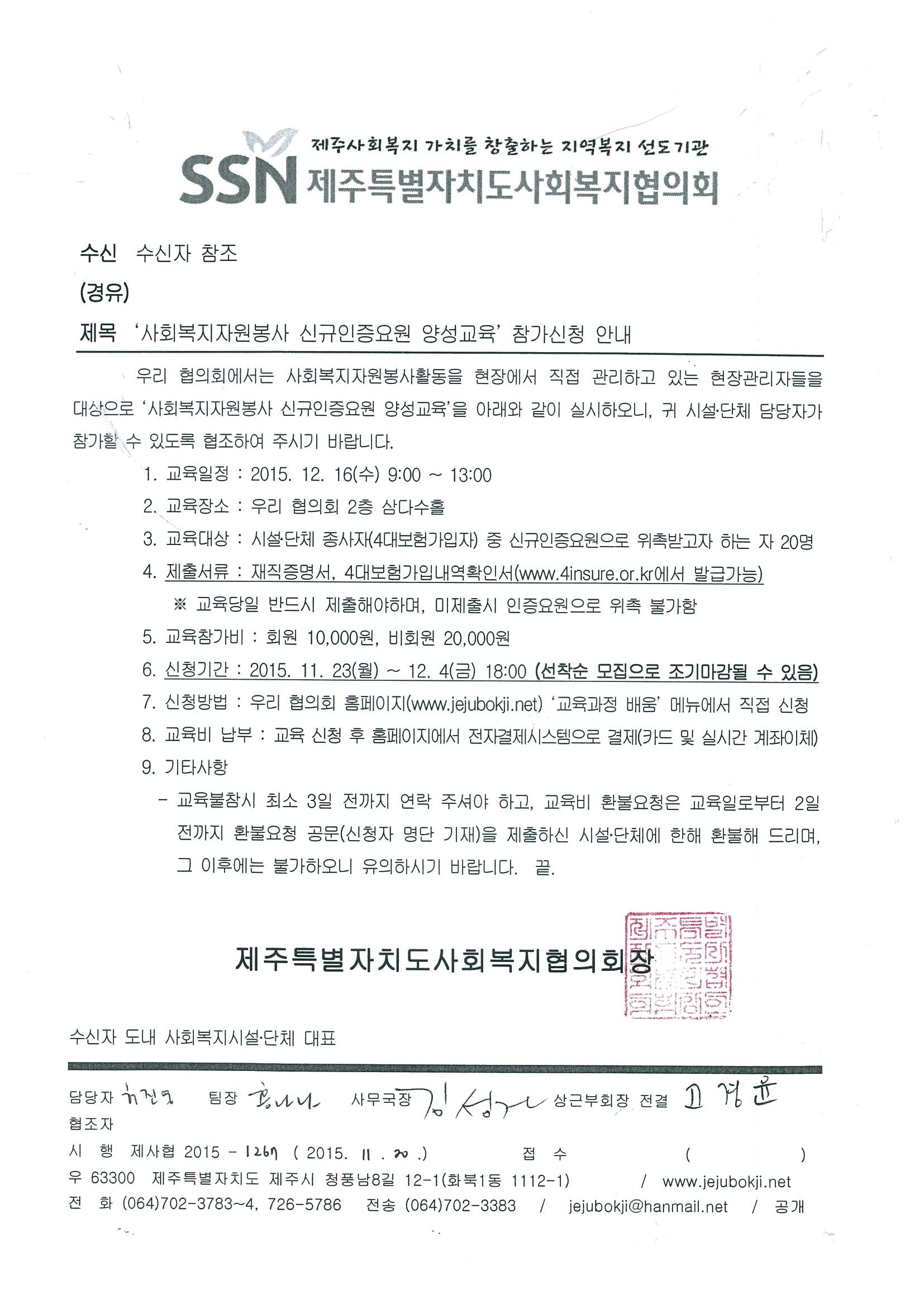 2015년도 4분기 사회복지자원봉사 신규인증요원 양성교육 안내