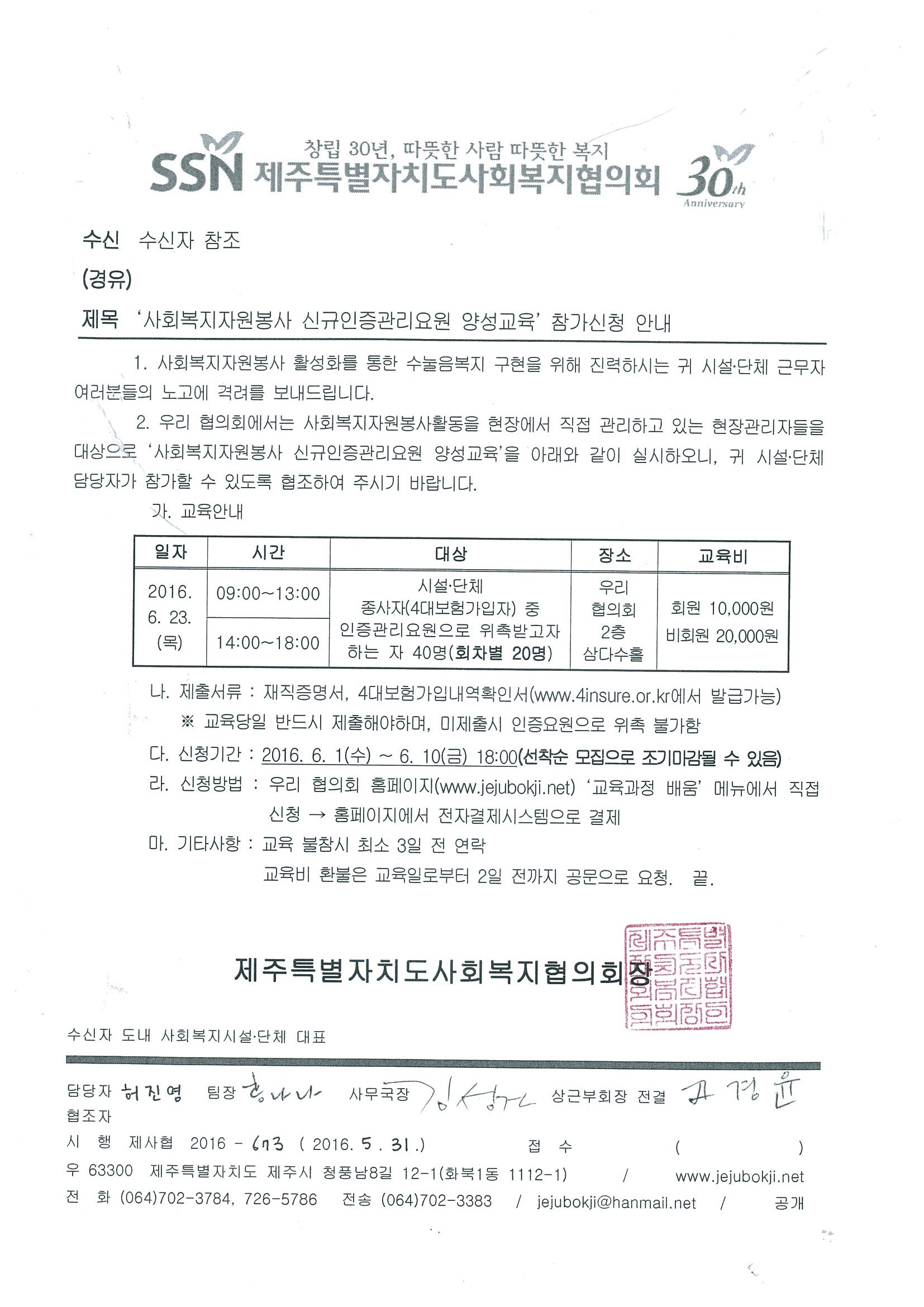 2016년도 2분기 사회복지자원봉사 신규인증요원 양성교육 안내