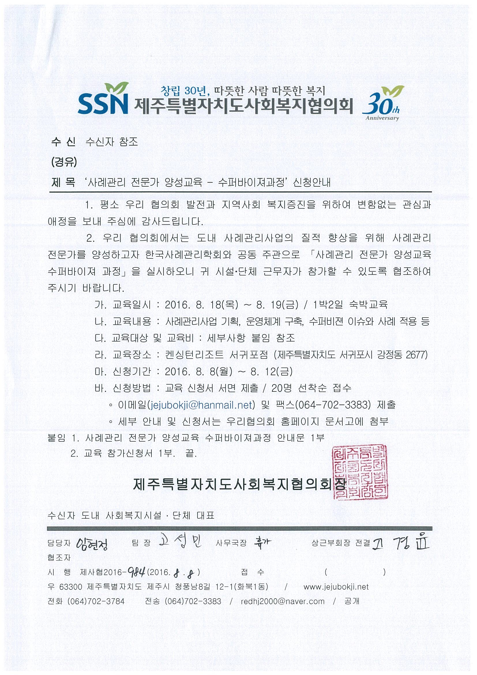 2016 사례관리전문가양성교육 - 수퍼바이져과정 신청안내
