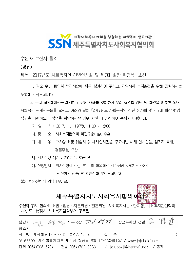 2017년도 사회복지인 신년인사회 및 제7대 회장 취임식 초청
