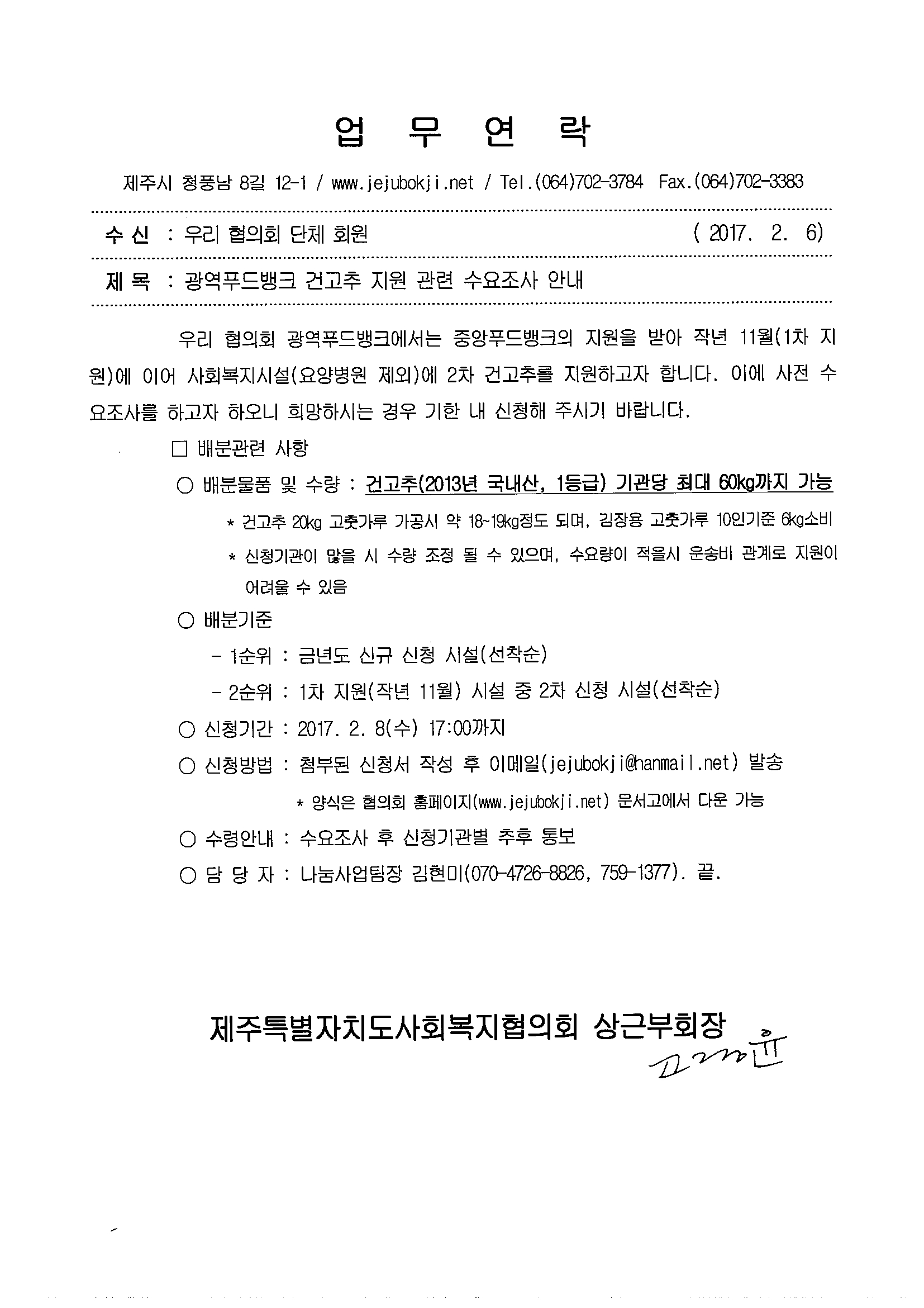 건고추지원 관련 수요조사