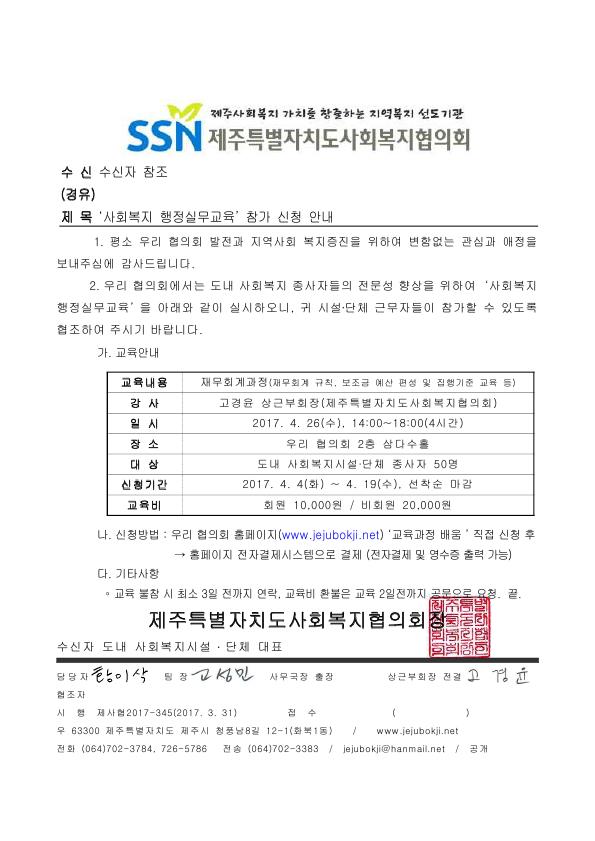 사회복지 행정실무교육(재무회계과정) 참가신청 안내