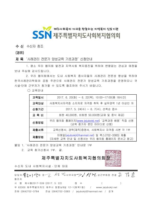 '사례관리 전문가 양성교육 기초과정' 신청안내
