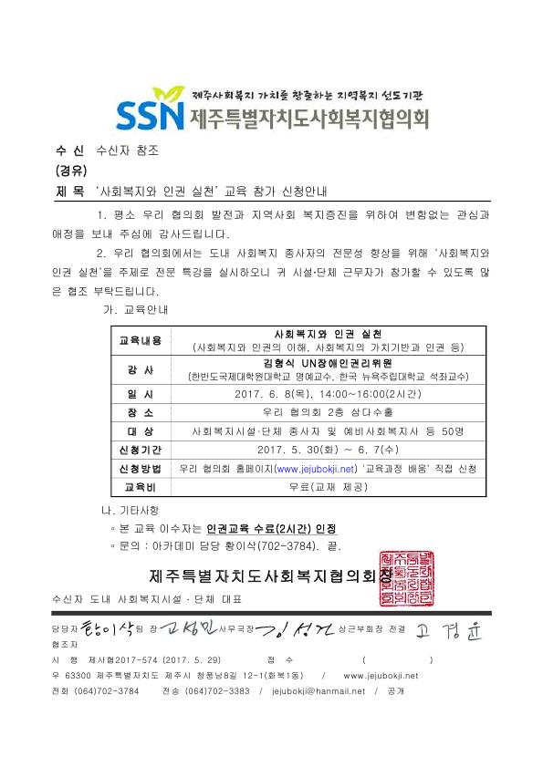 '사회복지와 인권 실천' 교육 참가 신청안내