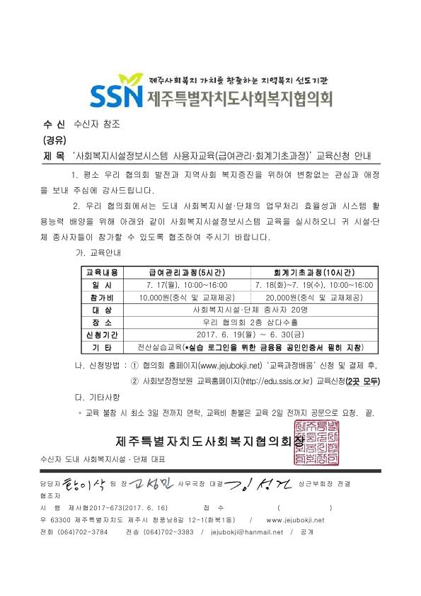 3분기 사회복지시설정보시스템 교육 안내(급여관리·회계기초과정)