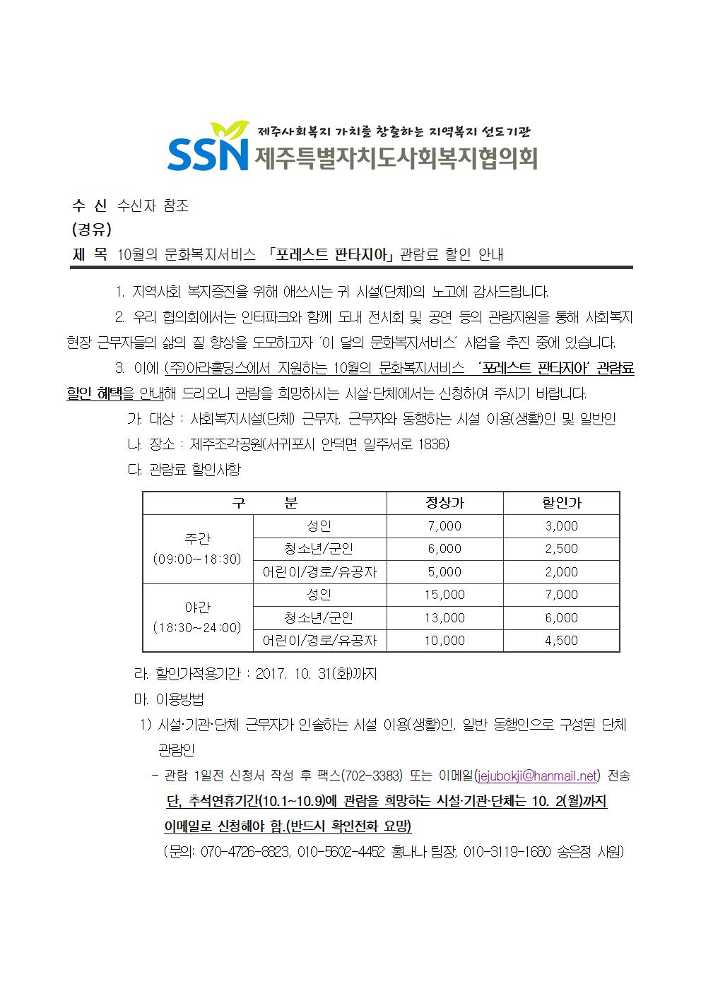 10월의 문화복지서비스 '포레스트 판타지아' 관람료 할인 안내