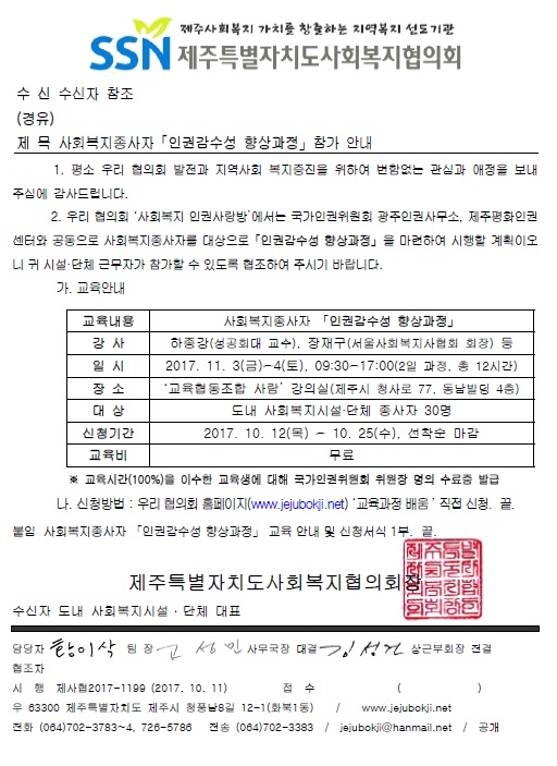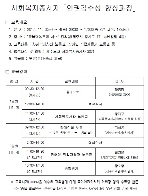 사회복지종사자「인권감수성 향상과정」참가 안내