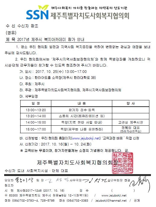 2017년 제주시 복지아카데미 참가 안내