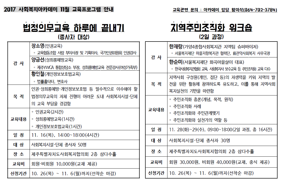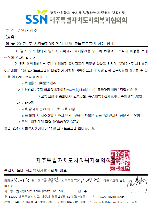 2017년 11월 사회복지아카데미 교육프로그램 참가 안내