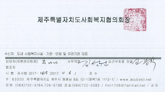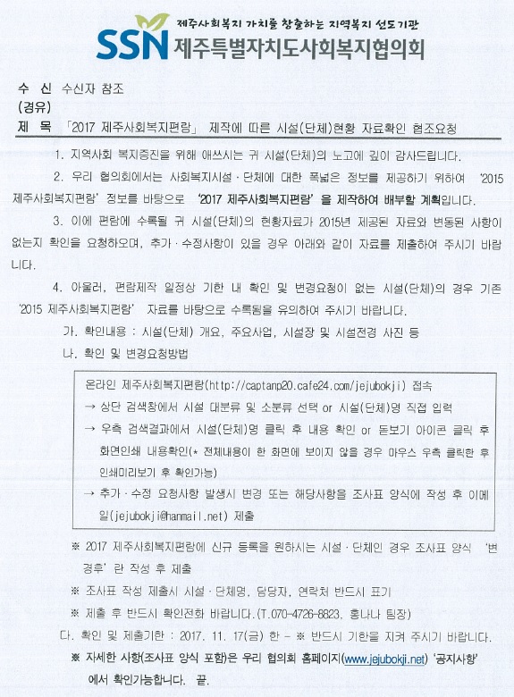 2017 제주사회복지편람 제작에 따른 시설(단체)현황 자료확인 협조요청