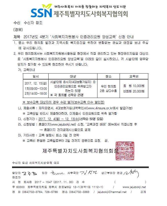 2017 사회복지자원봉사 신규인증요원 양성교육 참가신청 안내