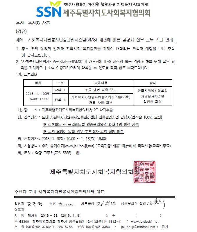 사회복지자원봉사인증관리시스템(vms) 개편에 따른 담당자 실무 교육