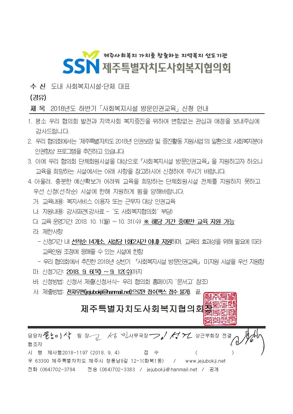 (선착순 마감됐습니다)2018년도 하반기 사회복지시설 방문인권교육 신청안내