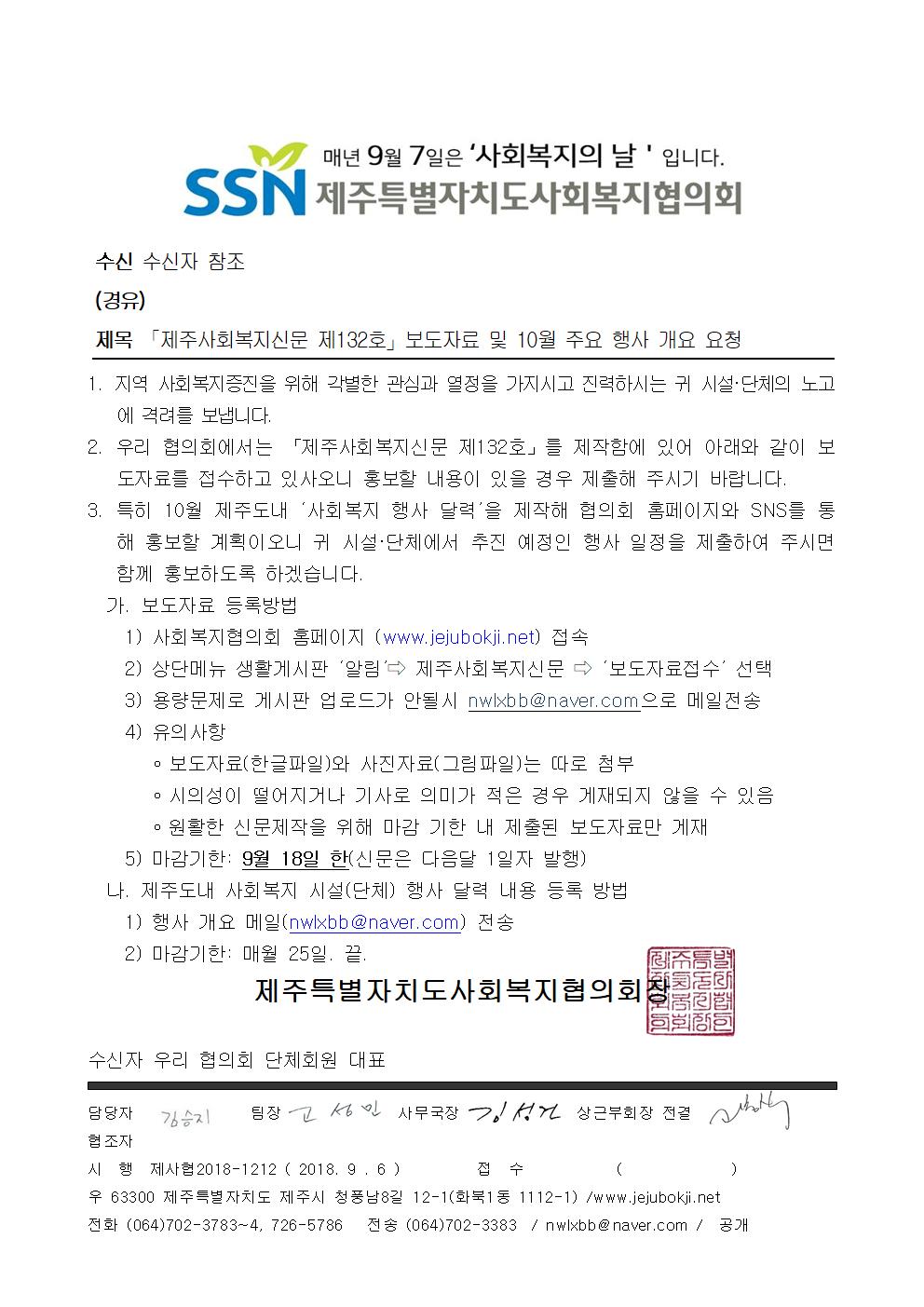 「제주사회복지신문 제132호」발행에 따른 보도자료 요청