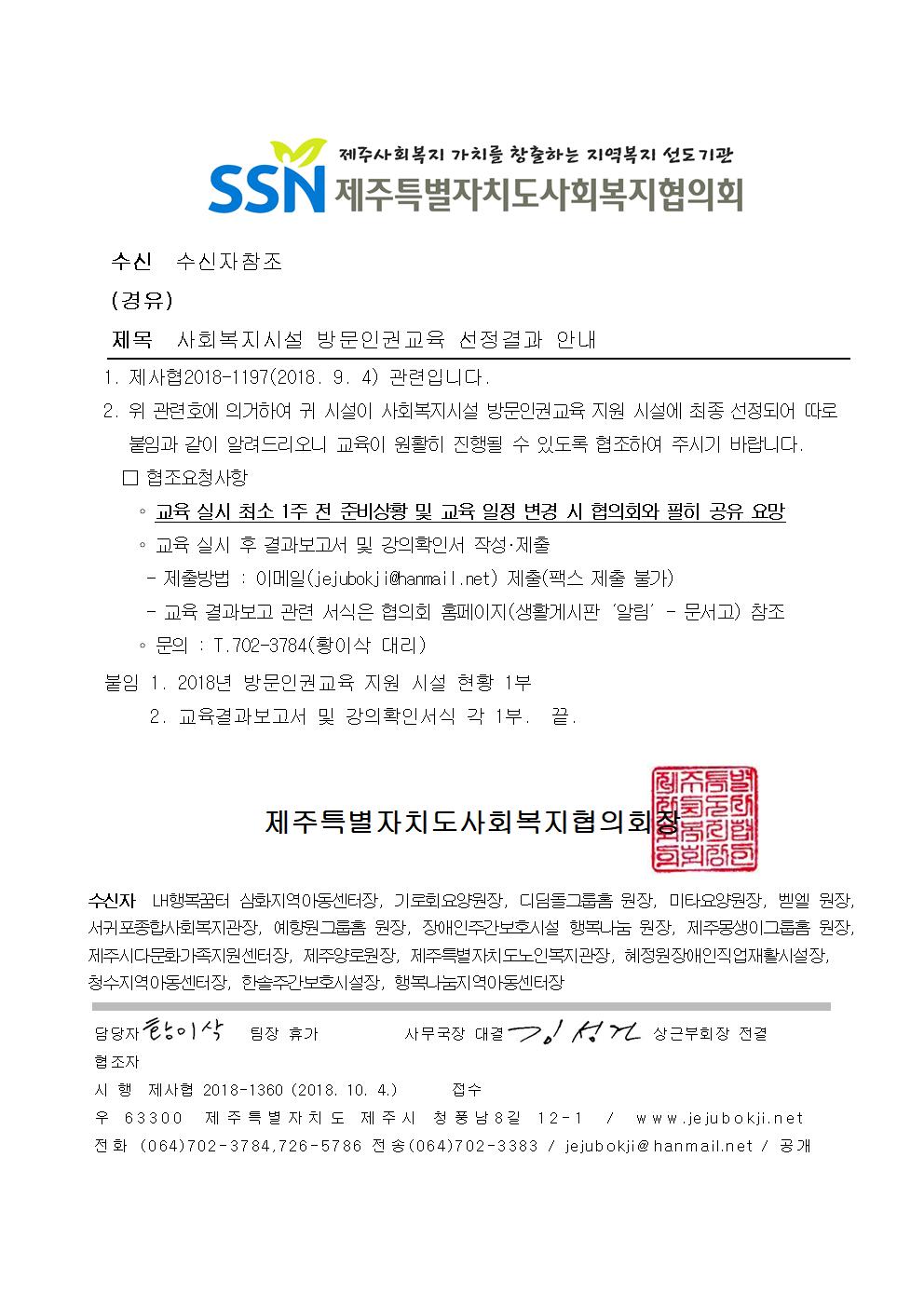 사회복지시설 방문인권교육 선정결과 안내(결과보고서식 첨부)