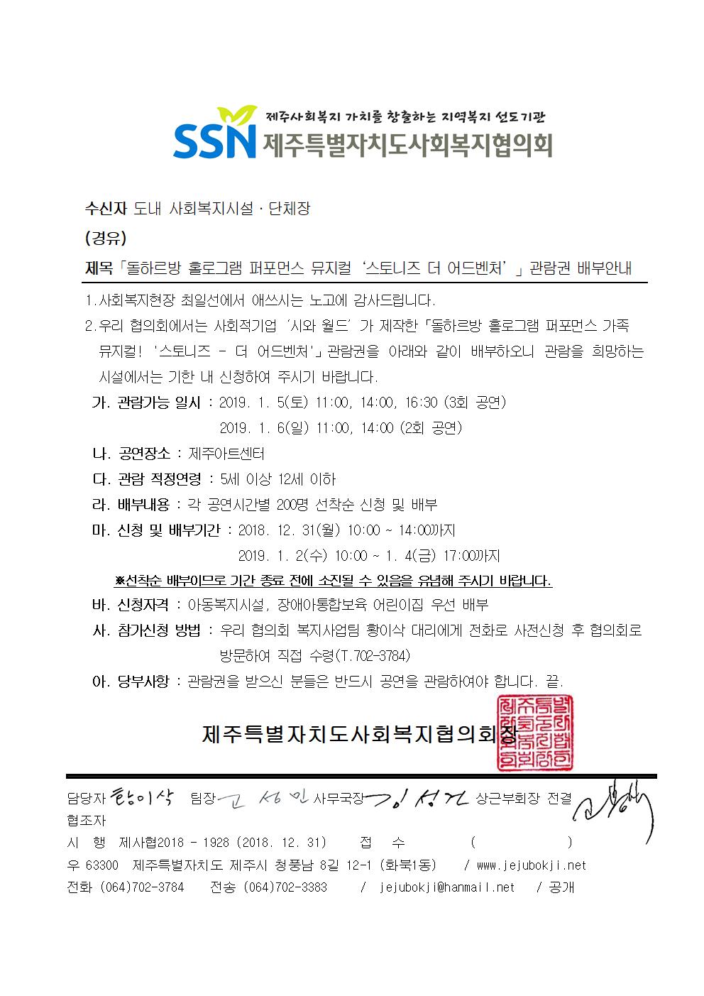 「돌하르방 홀로그램 퍼포먼스 뮤지컬‘스토니즈 더 어드벤처’」관람권 배부안내