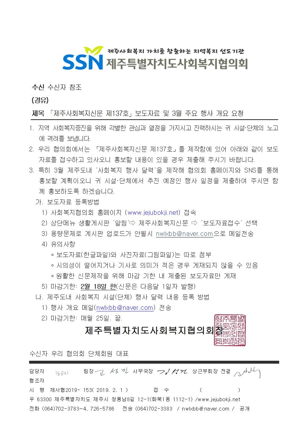 제주사회복지신문 제137호 보도자료 요청