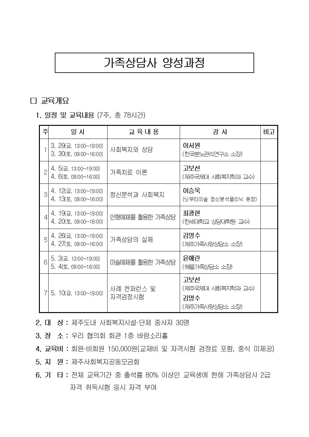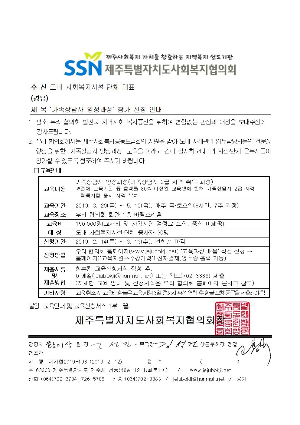 2019년도「가족상담사 양성과정」참가 신청 안내