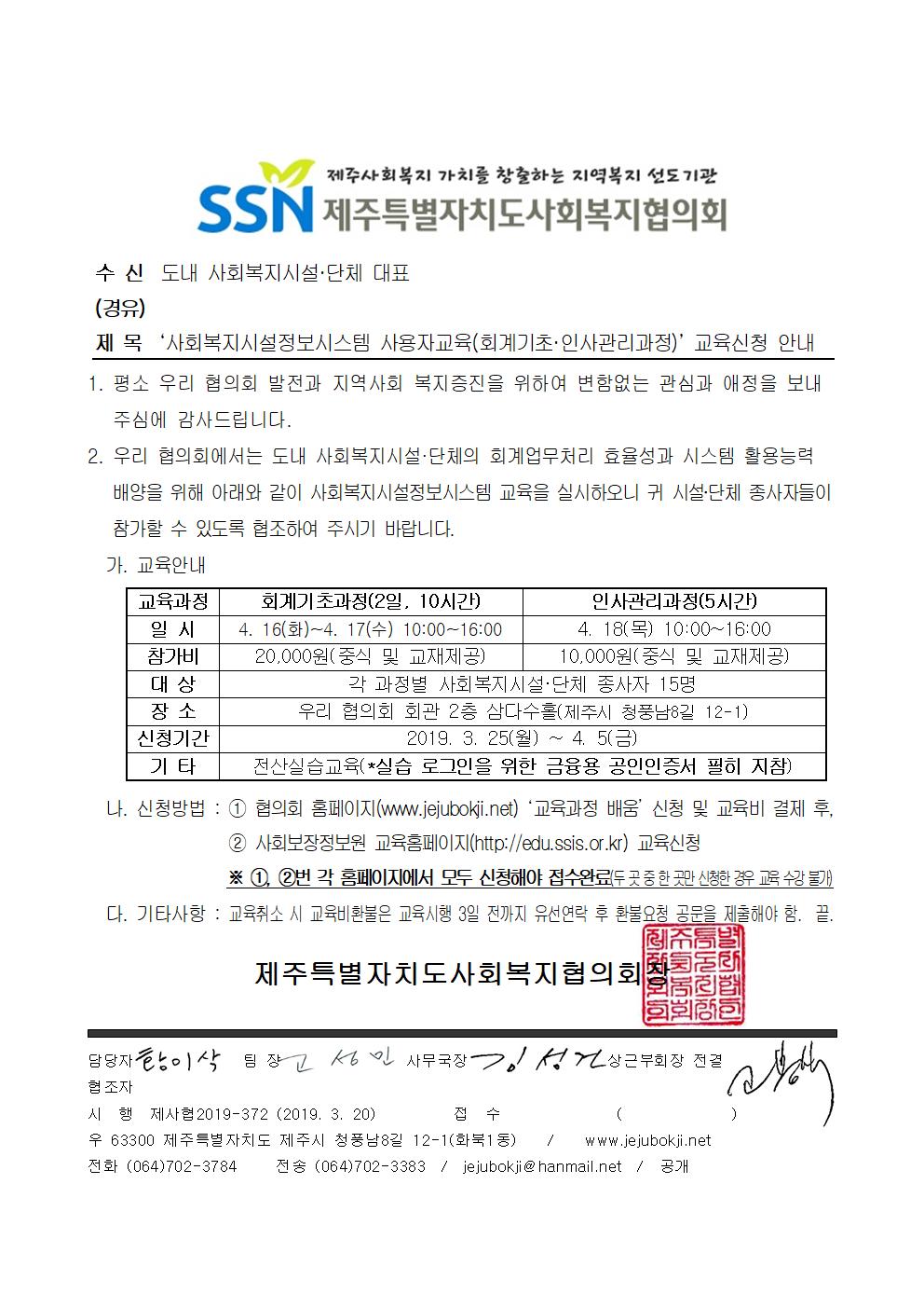 2019년도 2분기 사회복지시설정보시스템 교육 안내(회계기초·인사관리과정)