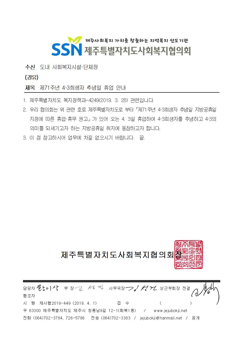 제71주년 4·3희생자 추념일 휴업 안내