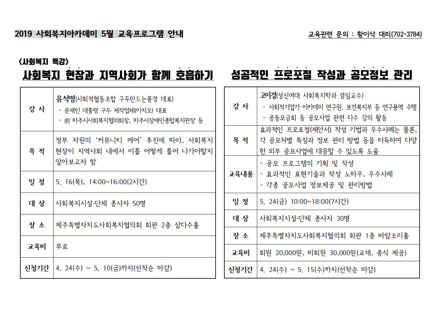2019년도 사회복지아카데미 5월 교육프로그램 참가 안내