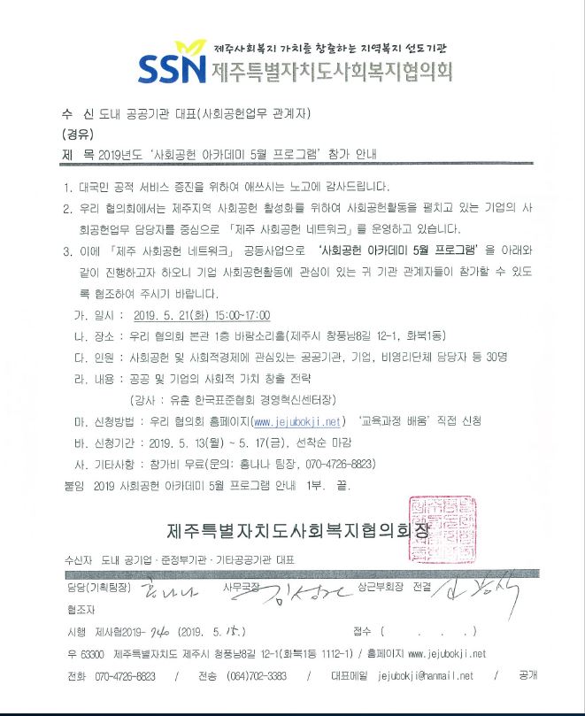 2019년도 '사회공헌 아카데미 5월 프로그램' 참가 안내