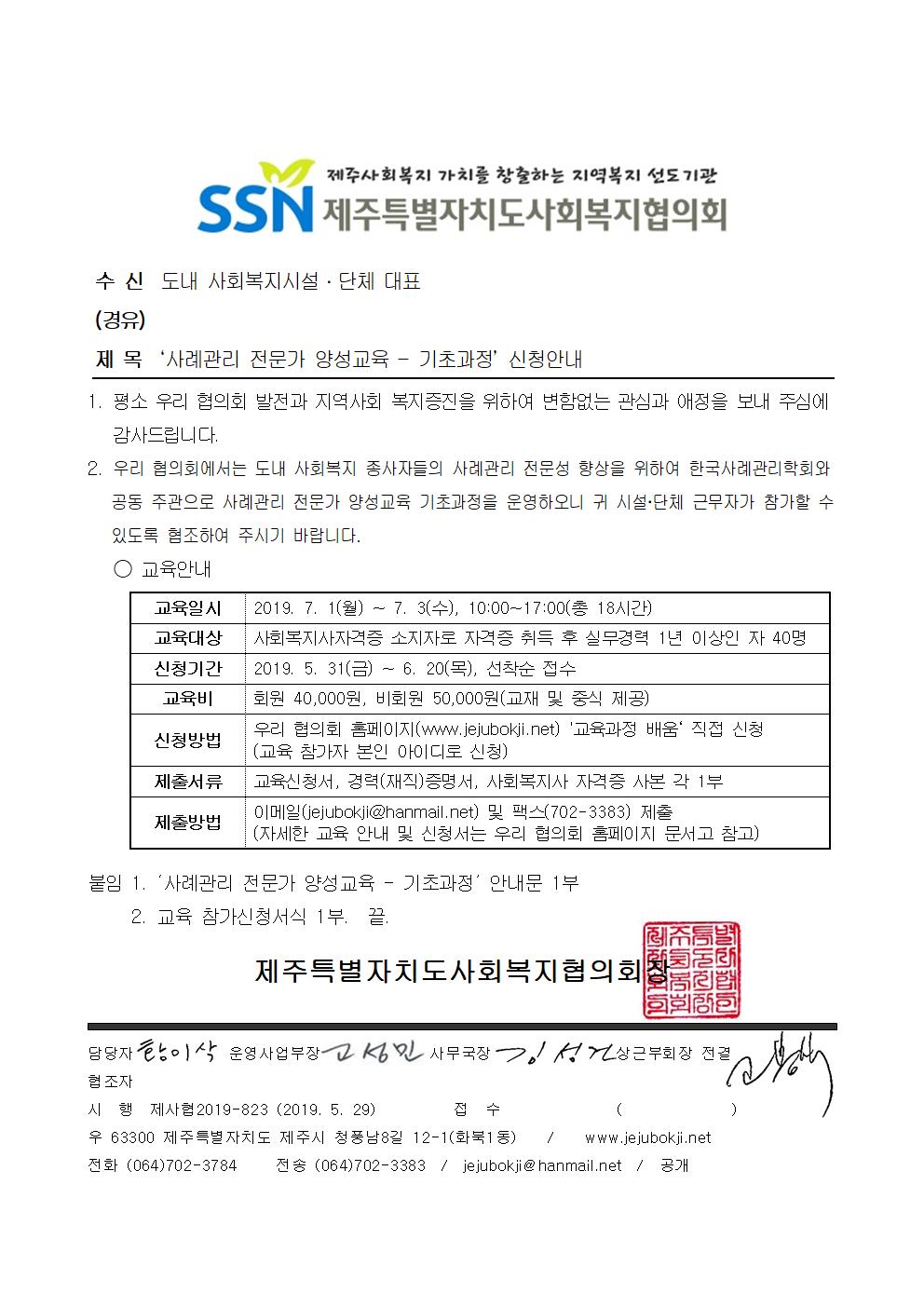'사례관리 전문가 양성교육 - 기초과정' 신청안내