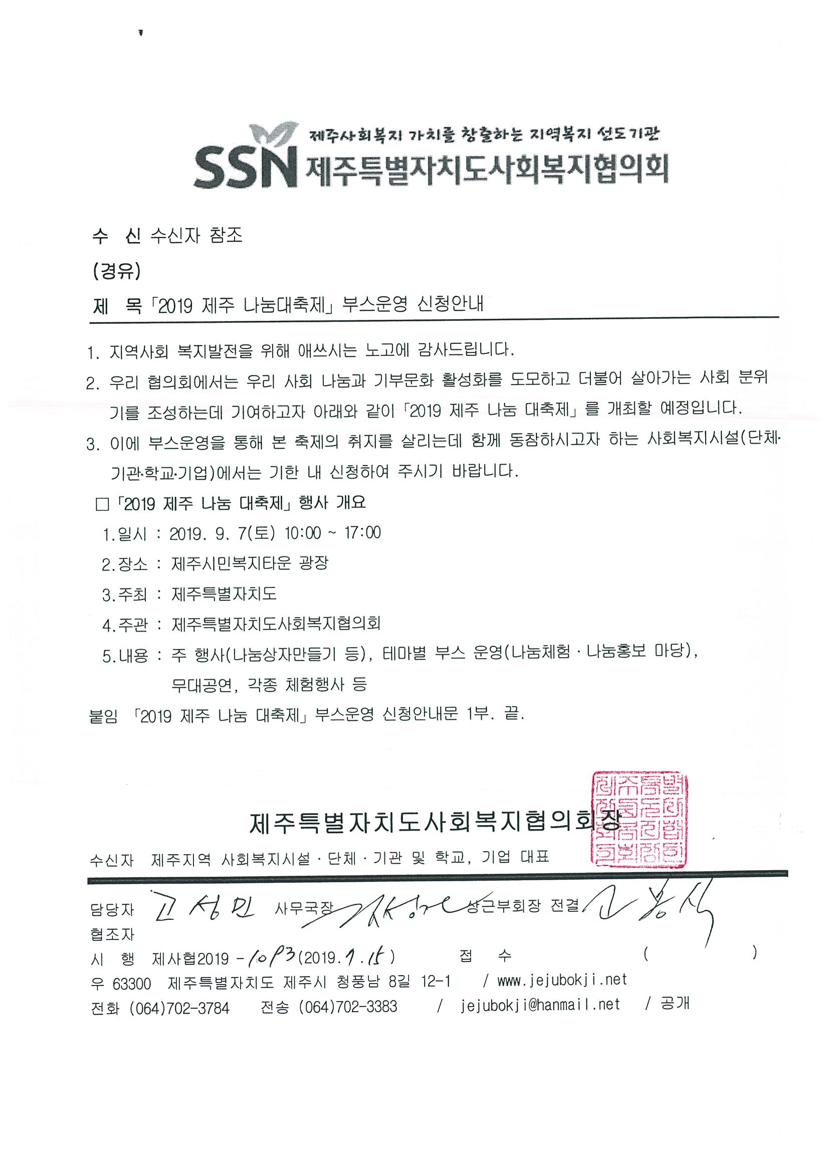 2019 제주 나눔대축제 부스운영 신청안내