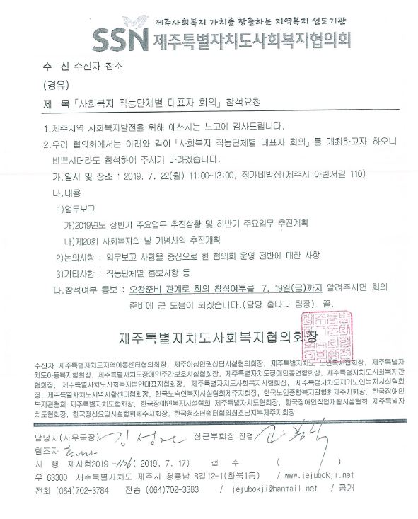 「사회복지 직능단체별 대표자 회의」참석요청